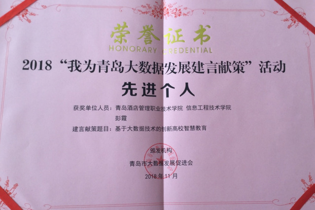 大会由青岛市电子政务和信息资源管理办公室及青岛市大数据发展促进会主办,对为青岛市大数据建设建言献策的先进个人、大数据优秀学术成果进行了表彰。大会同时揭晓了青岛2018年度优秀大数据学术成果,有来自青岛各大高校的23项相关学术成果经严格评审筛选后入围。