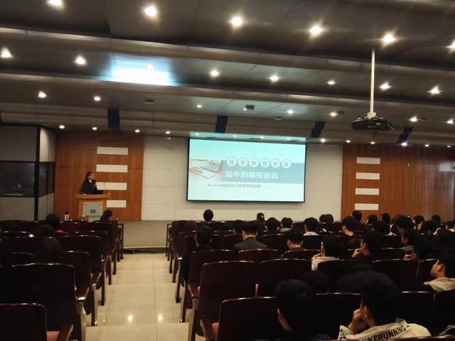陈姗针对本学期开设的学分制试点课程《Java程序设计》向同学们做了介绍。介绍的主要内容包括Java语言本学期学习的目标,Java这门语言今后发展的方向,java的后续课程包括安卓平台和JAVAEE平台这两大部分,为同学们今后的学习方向和平台课程的选择做了一个介绍。另外,还介绍了本门课的教学团队、软件教研室开设的安卓实训室项目和我们的各大赛事。最后,说明了本门平台课程的期末考核方案,期末考核包括过程考核和最终考核两部分,过程考核包括十个子项目。