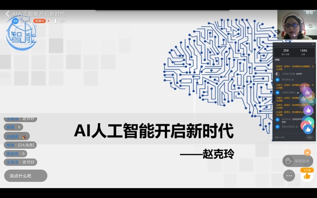 讲座中赵克玲与同学们在线上频频互动,鼓励同学们用更高更广的视野关注人工智能的发展,鼓励同学们努力学好专业知识,为我国的科技发展奉献自己的青春年华。同学们也不断留言、积极互动。