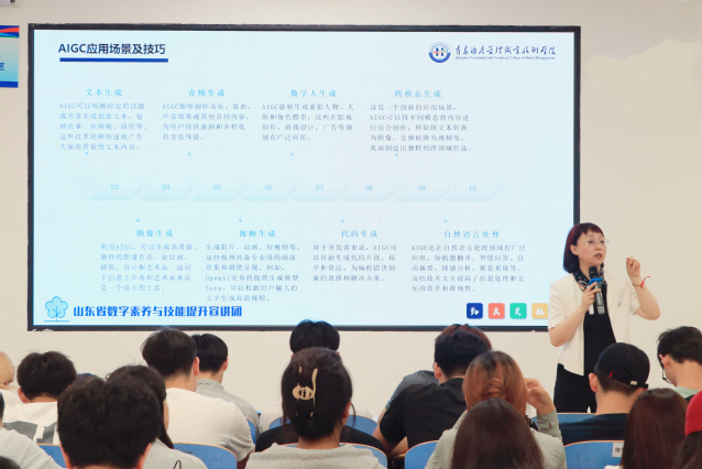 衣文娟在讲座中系统阐述了生成性人工智能的发展历程、挑战和未来方向。介绍了人工智能在复杂问题解决方面的应用和应用场景及技巧,详细阐述了生成式人工智能的概念,并详细介绍了文心一言、讯飞星火、通义千问等生成式人工智能软件。最后,强调了正确使用生成式人工智能的重要性,并提出了未来信息行业发展需求和方向。