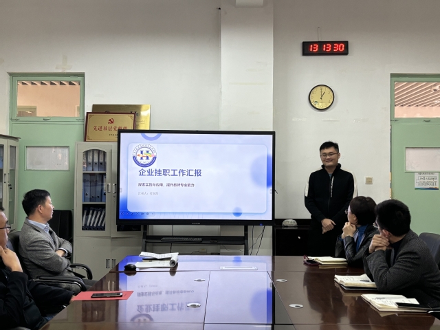 完成2024年度上半年挂职的刘汝元和付国凯两位老师针对此次挂职的背景、主要工作、收获体会、企业反馈与评价,以及挂职结束后的工作创新和问题解决策略进行了汇报分享。付国凯老师分享了他在挂职期间参与企业项目与任务的经历,包括项目开发、技术攻关、管理建议提供和校企合作课程开发。刘汝元老师介绍了挂职期间的收获与体会,通过挂职经历使得自身的专业技能得到提升,同时积累了实践操作经验,也培养了创新思维。