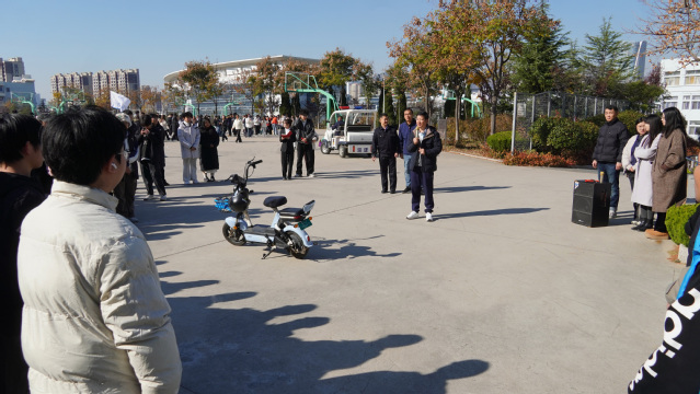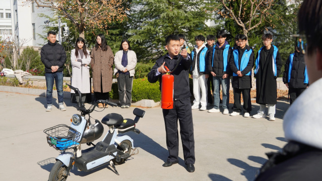 演习结束后,保卫处教师李宗峰开展应急疏散安全知识讲解。他围绕消防核心要点,详细阐释了火灾报警的规范流程、初期火灾扑救技巧及火场逃生自救的关键注意事项;同时结合校园实际案例,重点普及电车安全使用知识,并现场演示了灭火器的操作步骤与使用规范,让师生直观掌握实用安全技能,进一步拓宽了安全知识覆盖面。