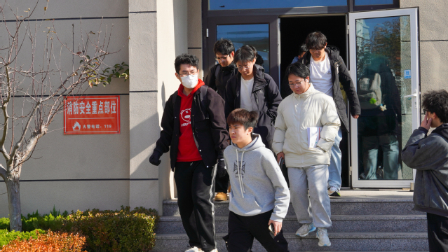 消防应急疏散演习正式启动。模拟起火信号发出后,全体参与人员严格遵循应急预案要求,保持弯腰低姿、用湿毛巾捂住口鼻的正确姿势,沿指定疏散通道快速有序撤离。在工作人员的引导下,全体人员短时间内安全抵达指定集结区域,整个过程紧张有序、衔接顺畅,充分检验了应急预案的可行性和师生的应急反应能力。